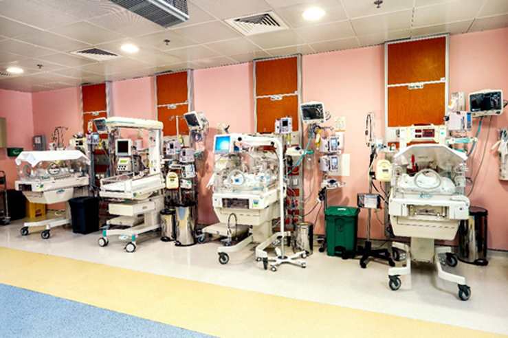خلال العام الماضي وجهت العناية المركزة للأطفال حديثي الولادة اهتمامها وتركيزها نحو رعاية الأطفال الخدج . خلال الاشهر الماضية اتخذ فريق وحدة العناية المركزة للأطفال الحديثي الولادة خطوة الى االأمام ونجح في اجراء العلاج بالمؤثرات السطحية من خلال أسلوب استخدام المواد المقللة للتوتر السطحي بالاجتياح الأدنى (LISA) لعلاج 3 أطفال خدج مصابين بمتلازمة الضائقة التنفسية (RDS). أبلى الأطفال الرضع الثلاثة بلاء حسنا أثناء خضوعهم لهذا الأجراء وقد أظهروا تحسنا واضحا بعد العلاج
